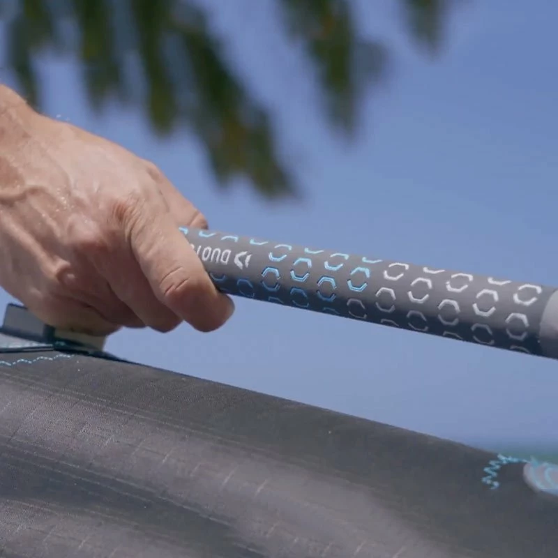 Pour fournir toujours plus de précision et de confort, elle est équipée de poignées rigides larges pour une sensation unique proche de celle que l’on peut retrouver avec un wish. La forme permet d’obtenir un confort maximale de la préhension et le feeling direct qu’elles génèrent permettent d’avoir un pilotage à la précision exemplaire.
