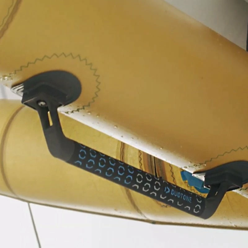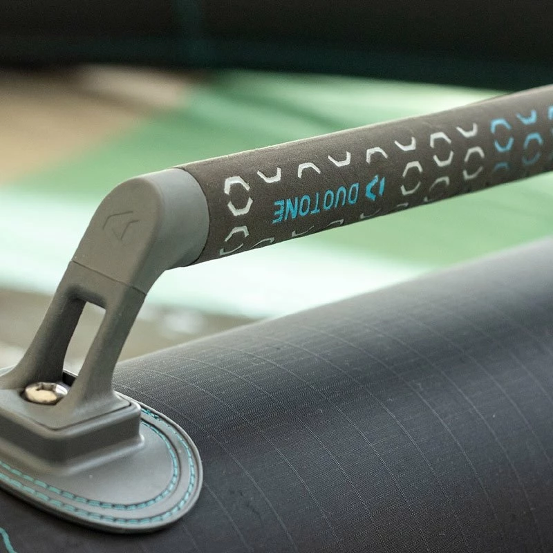Pour fournir toujours plus de précision et de confort elle est cette année équipée de poignées rigides larges pour une sensation unique proche de celle que l’on peut retrouver avec un wish. La forme permet d’obtenir un confort maximale de la préhension et le feeling direct qu’elles génèrent permettent d’avoir un pilotage à la précision exemplaire.
