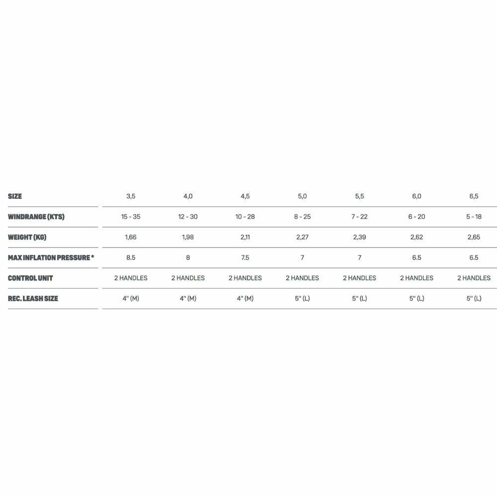 Pour fournir toujours plus de précision et de confort, elle est cette année équipée de poignées rigides larges pour une sensation unique proche de celle que l’on peut retrouver avec un wish. La forme permet d’obtenir un confort maximal de la préhension et le feeling direct qu’elles génèrent permettent d’avoir un pilotage à la précision exemplaire.