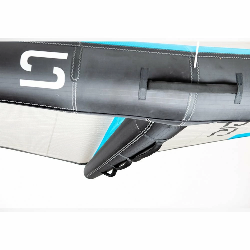 L’aile est équipée de poignées recouvertes d’EVA sur la latte centrale. Il est également possible de monter un wishbone (non fourni) de windsurf sur l’aile.