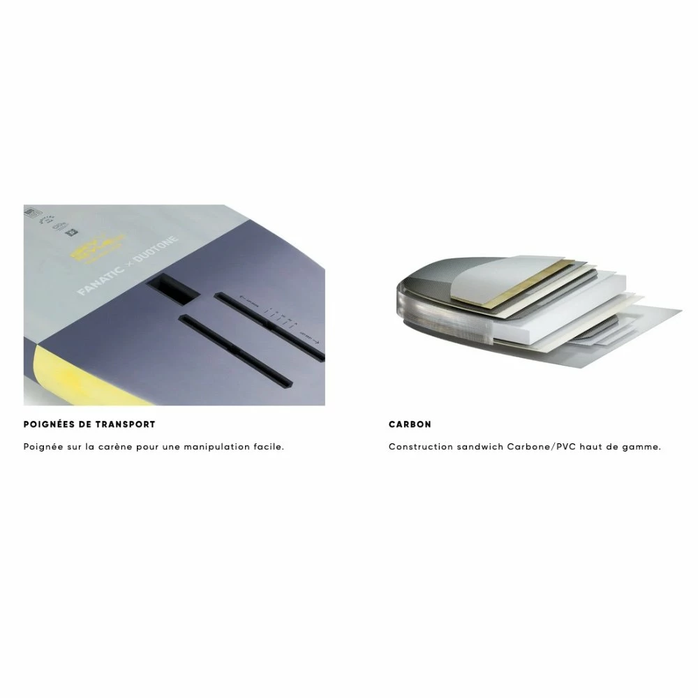 Les avantages de la construction carbone ne sont plus à démontrer, ici la conception Sandwich PVC Carbone s’est largement inspirée du windsurf pour aboutir a une board qui allie légèreté et solidité. Si vous voulez le meilleur de ce qui peut se faire en board de wing, que se soit au niveau performances ou au niveau poids, ne cherchez plus vous avez trouvé votre board……