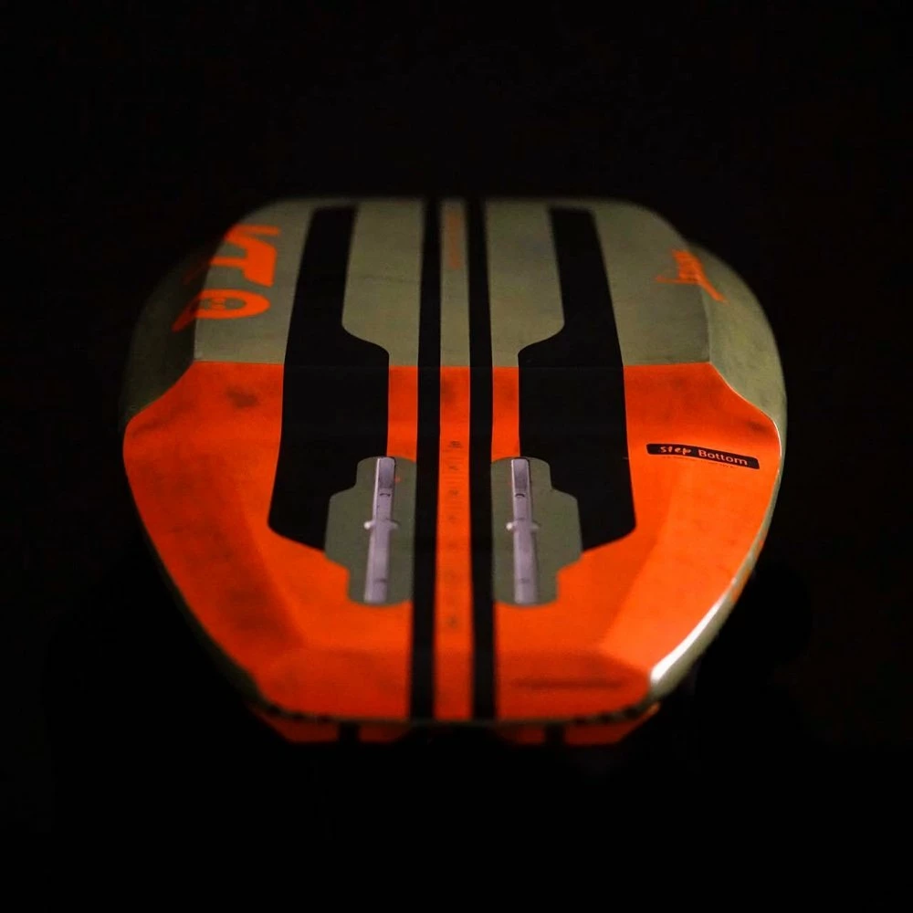 L’histoire du Step Bottom vient du constat réalisé par Eliot Leboe, après avoir accumulé des heures et des heures de vidéos de riders en Wing, il a pu constater que lorsque les riders plongent, cela vient principalement des contacts du tail de la board avec l’eau et non de la petite taille de cette dernière.