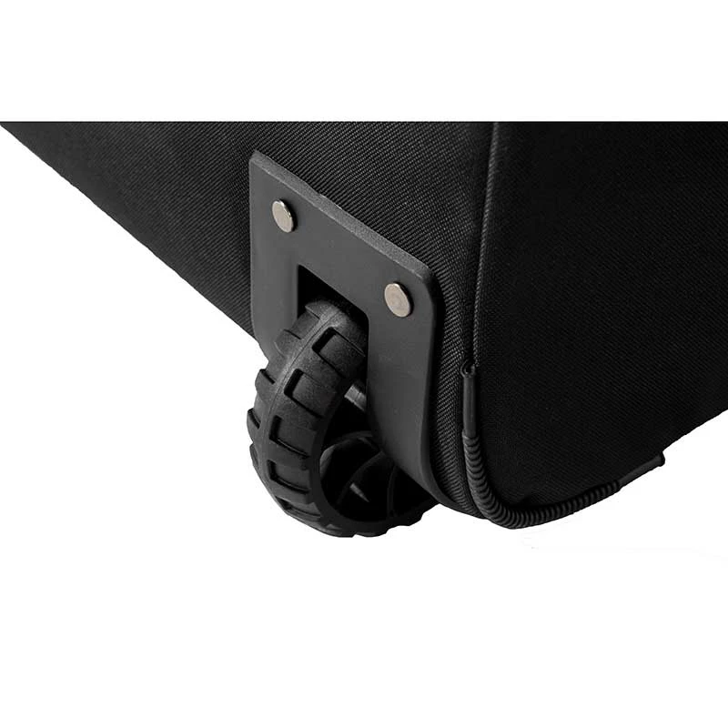 Le portage peut se faire par une poignée latérale, par la sangle bandoulière amovible ou tout simplement en tirant le sac et en utilisant les roulettes.