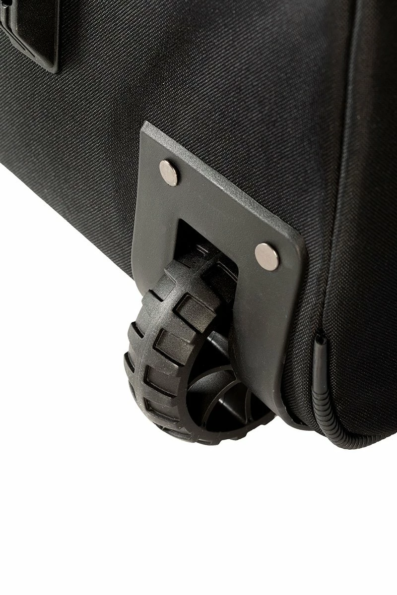 Pour faciliter le transit en aéroport, elle intègre deux roulettes et une poignée de portage rembourée en partie haute.