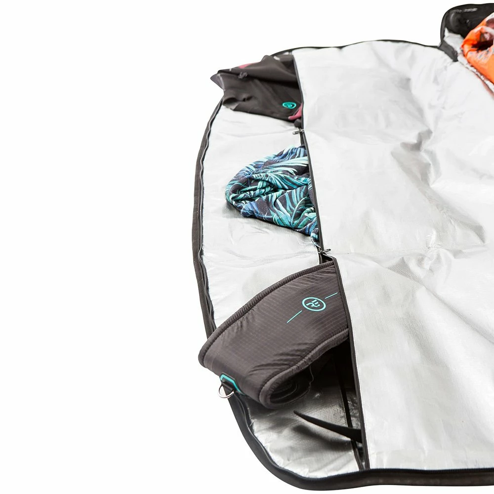 Le rembourrage robuste à 360 degrés protègera votre planche, une fermeture éclair sur toute la longueur qui se veut résistante s’ouvre largement pour y glisser facilement votre matériel et une grande poche interne s’adapte à vos ailes.