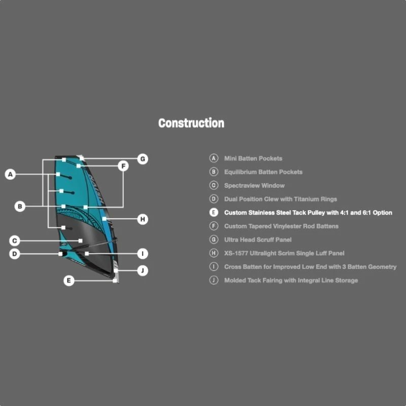 - Taille 4.1 – Luff 366 cm – 148 cm – Rec Mast RDM 370/340 – Head Vario – Battens 3 – Cams 0